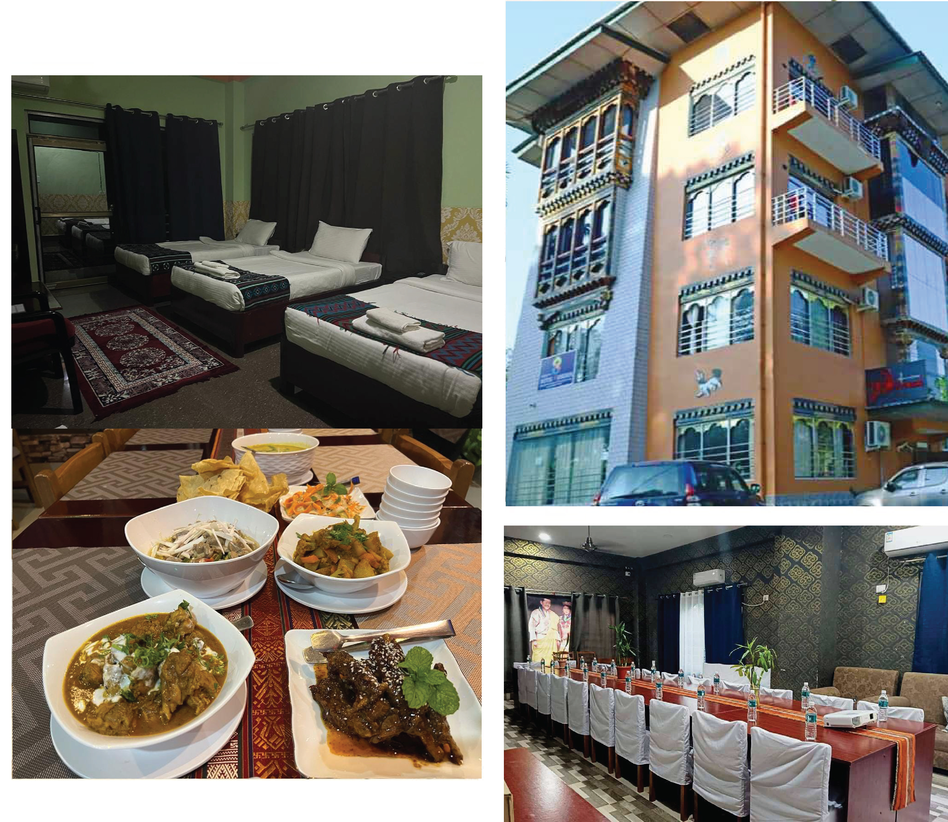 Gelephu town.The room property stands amidst the areca palm trees and overlooks the scenic beauty of mountains. We offer food, accommodation and a conference venue with a spacious parking area. Our motto is “Your Comfort, Our Responsibility”.